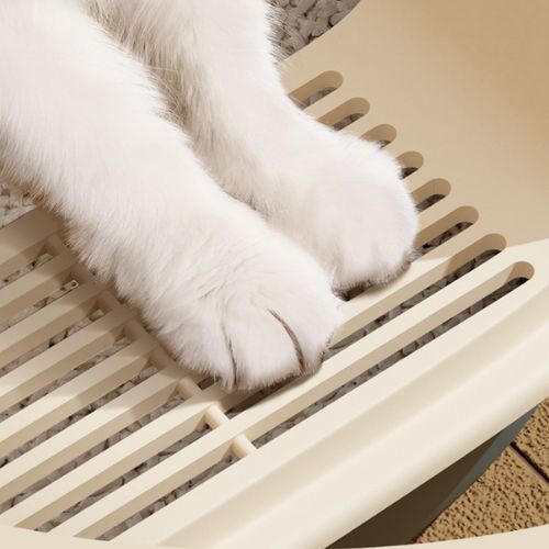 Le bac est entièrement détachable, ce qui facilite le nettoyage. Il vous suffit de vider la litière, de rincer le bac à l’eau tiède et de le sécher avant de remettre la litière propre.